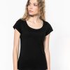 100% Cotton enzyme washed for extra soft hand feel (Oxford grey : 90% Cotton / 10% Viscose). Feminine fit. Self fabric neckline. Oxford Grey taped neck for all colours, except for white body where tape neck is white and oxford grey body where tape neck is dark grey. Twin needle finishing. BSCI certified. Oeko-Tex certified.