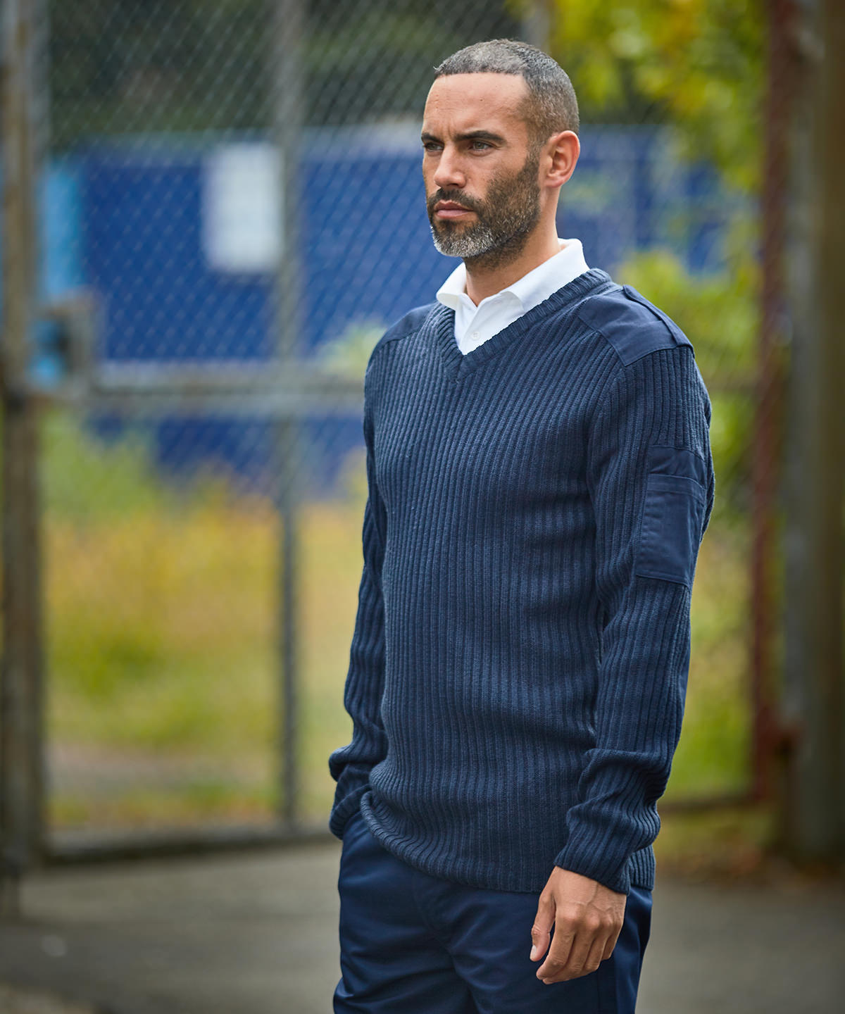 The Pro sweater is a staple workwear item. Designed with a v-neck and set-in-sleeve and finished with knitted saddle shoulders for extra durability, it’s smart style makes it extremely versatile for all workwear needs.