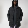 Unisex, unlined shirt jacket. Set-in sleeve. Self-fabric collar with collar stand. Button-down front placket with one button on sleeve cuff. Chest pockets and side seam pockets on both sides. Inside hanger loop in grosgrain tape. Spare buttons attached on inside seam.